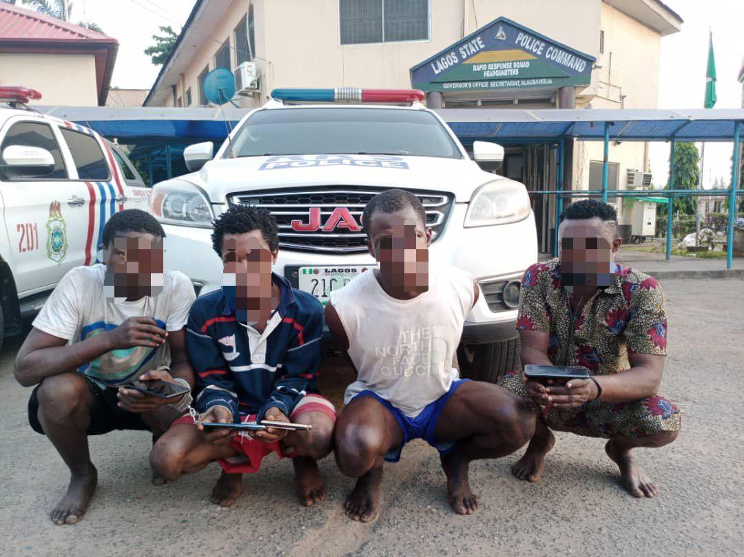 The suspects identified as Wasiu Olawale (23) an ex-convict, who was released in May 2023; Adebayo Olatunbosun (20); Wale John (28) and Uche Ugwu (25), the gang leader, were arrested around 7:30 p.m. after one of the victims alerted RRS bike riders on patrol of the area.
