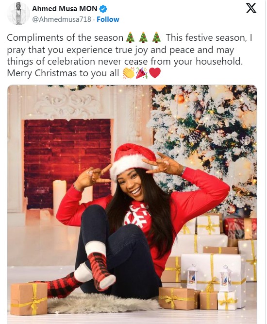 Some Muslims have taken to social media to condemn Super Eagles captain Ahmed Musa for sharing a picture of his Cross River wife, Juliet Ejue, and wishing Christians a merry Christmas.