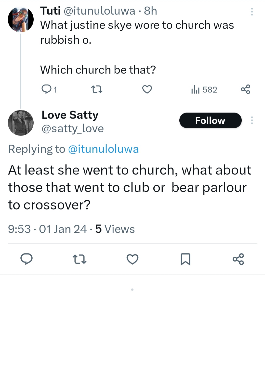 Nigerians have taken to Twitter to slam American singer, Justine Skye over a dress she wore to attend a church in Lagos.