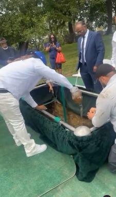 A video of the moment the loved ones of a woman were pouring liquor into her grave at her funeral has sparked reactions online.