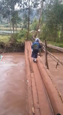 A video of a little girl crossing a dilapidated bridge while on her way to school has surfaced online.