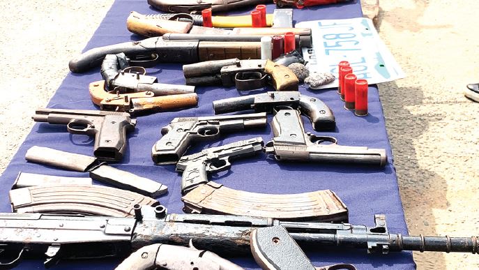 Some of the items recovered included a toy pistol, 72 live cartridges, 75 live ammunition, one expended cartridge, one pistol magazine, six axes, four daggers, five cutlasses, two vehicles, one Point of Sale machine, fake vehicle registration plates and various charms.