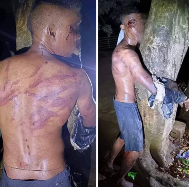 He was confronted by the homeowner and his family who restrained him to a tree and whipped him with sjamboks and sticks.