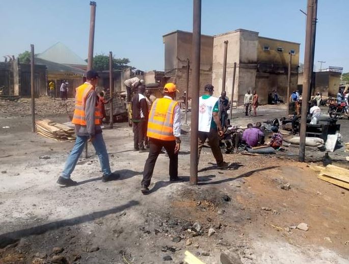 NEMA staff led by Abbas Hamisu of the Relief and Rehabilitation Unit, with support from KADSEMA, Red Cross and Federal Fire Service, conducted an assessment of the fire disaster at the market and some housing units owned by the Kaduna State Government.