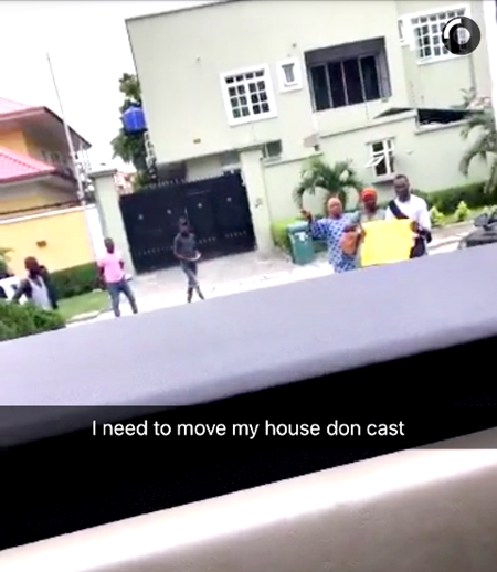 "I need to move, my house don cast," the HKN boss hissed on snapchat, and from the clip, we see the people holding up placards in front of his gate.