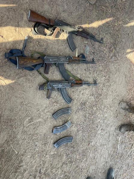 "Items recovered include; 3 AK-47 rifles mounted with magazines, 3 extra magazines, 142 rounds of ammunition and pairs of military uniform among other items.