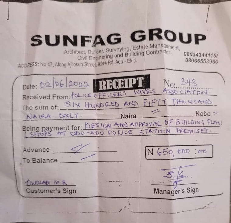 "The total money we paid then was N115,000. Although some people did not pay the N50,000 POWA allocation, they only paid N55,000 for normal government approval. We were like three or four who paid the complete N115,000 for Ologede police station."