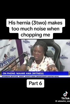 She stated that he can only perform for one minute in bed, and has a hernia that makes so much noise during intercourse.