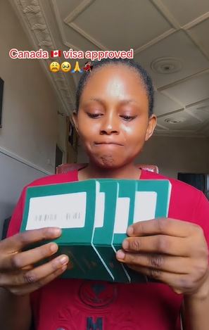 A Nigerian woman could not hold back tears as she showed off her passports after her Canada Visa got approved.