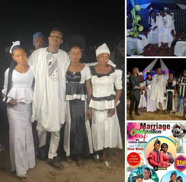 A Nigerian man, Tersugh Aondona, tied the knot with three women, Blessing, Nancy and Sulumshima, on the same day in Benue State.