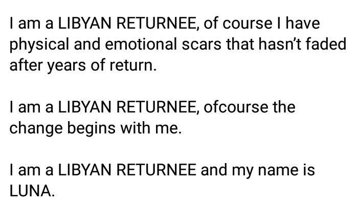 “I am a LIBYAN RETURNEE and my name is LUNA.”