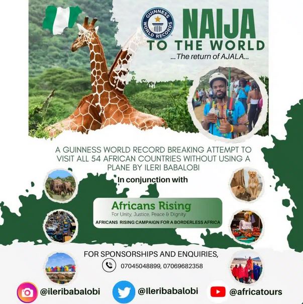 A Nigerian man, Ileri Babalobi is set to break the Guinness World Record by embarking on a journey to all 54 African countries without going by air.