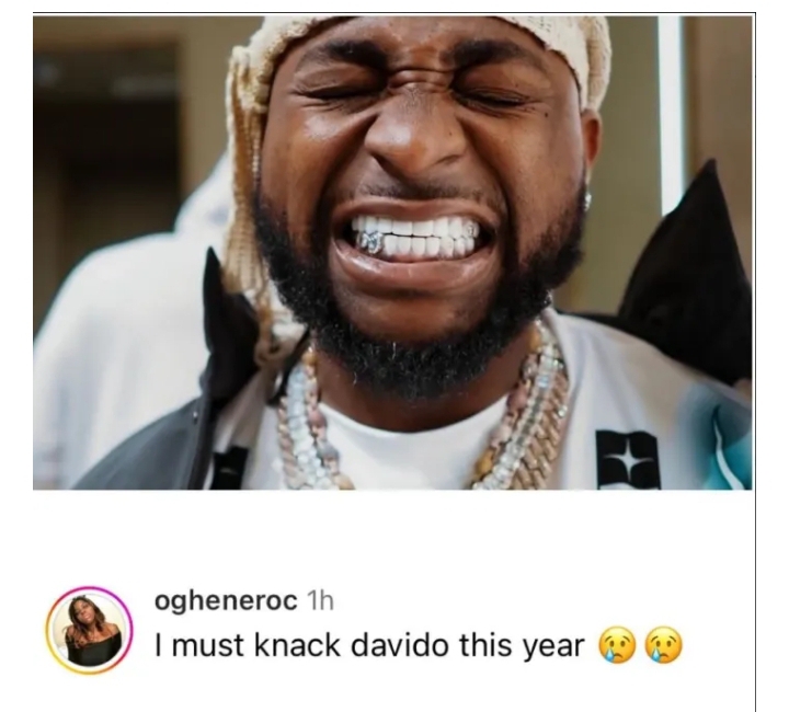 “I must knack Davido this year 😢😢” she wrote.