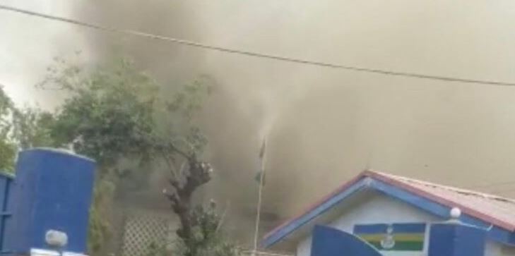 “At about 05.45 a.m. the Divisional Police headquarters was engulfed by fire and a major part of the building was burned down completely.