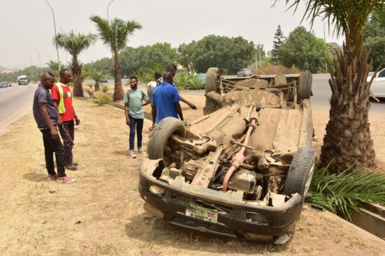 A Nigerian driver and four passengers who were travelling from Zuba to Garki Area 1 in the Federal Capital Territory, Abuja, have narrowly escaped death, Daily Trust reports.