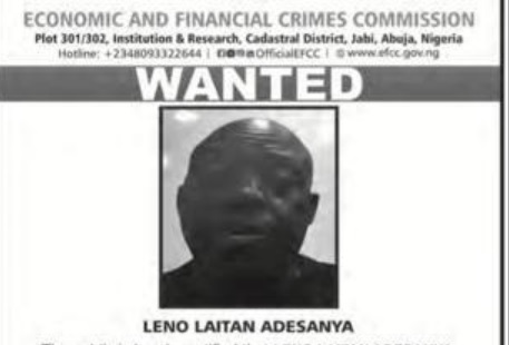 Leno Adesanya has been declared wanted by the Economic and Financial Crimes Commission (EFCC).