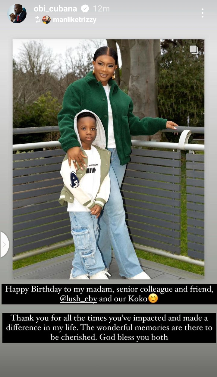 Nigerian socialite and businessman, Obi Cubana has celebrated his wife and son on their birthday.