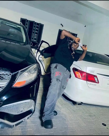 He was seen in photos he shared online standing by his Mercedez and the new Lexus.