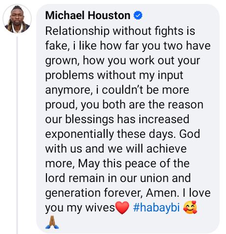 Meanwhile, their husband commented on one of their posts, writing: “Relationship without fights is fake, i like how far you two have grown, how you work out your problems without my input anymore, i couldn’t be more proud, you both are the reason our blessings has increased exponentially these days.