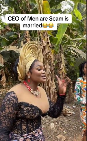 A new bride has warned ladies to flee from men as she gets hitched traditionally with her man.