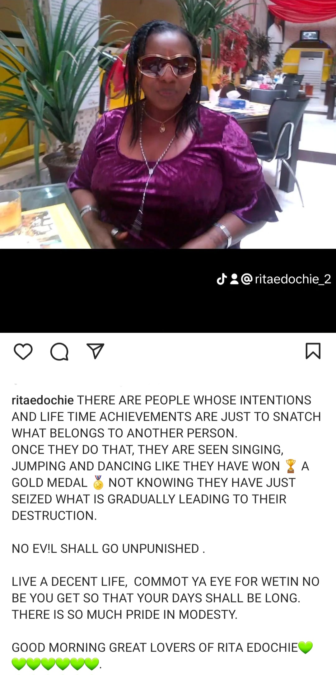 No Evil Shall Go Unpunished - Rita Edochie Call Out People Who "Snatch What Belongs to Another Person"