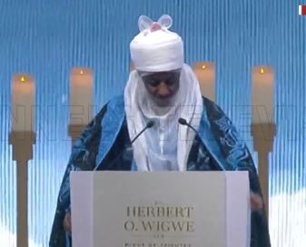 Former Emir of Kano, Sanusi Lamido Sanusi II, could not hold back tears while paying tribute to his late friend and former Group Chief Executive Officer of Access Holdings Plc, Herbert Wigwe on Wednesday, March 6.
