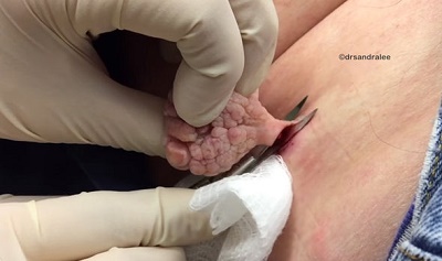 Famous dermatologist, Dr. Lee also called Dr Pimple Popper has shown the moment she removed a graphic skin tag on a man's body.