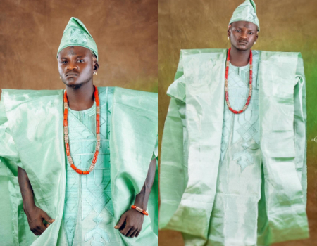 The controversial singer, known for his distinct style and songs, wore a vibrant green agbada for the celebration.