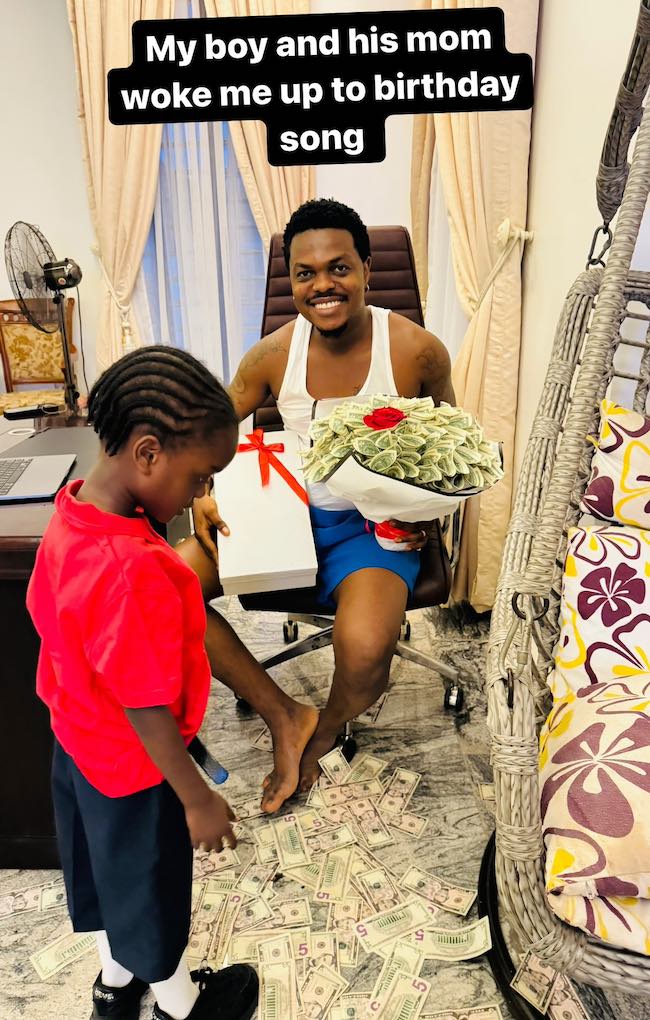 Taking to his Instagram Story, he also shared a photo of himself holding a bouquet of dollar bills worth $2K, a rough estimate of N3.2M.