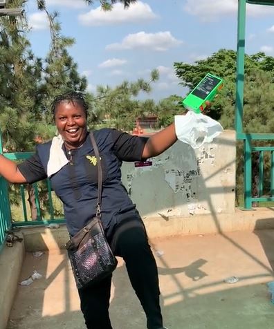 While unboxing the phone from its box, she said, “My pikin buy me phone,” as she continued to dance and show excitement.