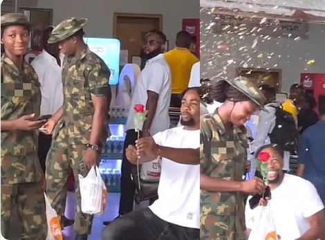It happened that @teaserprank_ surprised the soldier by giving her a flower and money at a public mall.