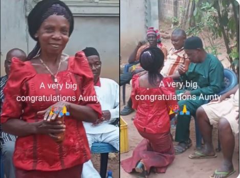 She was seen at her traditional wedding giving drink to her man.