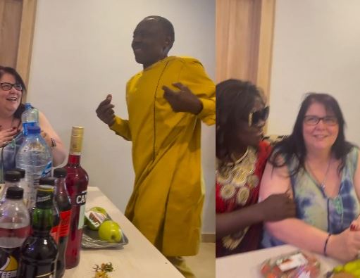 A Nigerian man has shared a video of the moment his elderly parents welcomed his Caucasian wife as she arrived the country.