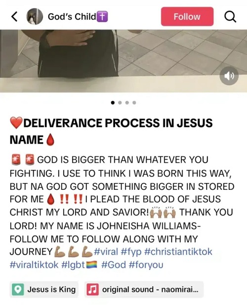 @johneishawilliams1 😭😭🤯MY GOD DID NOT FAIL🙌🏽 Process of deliverance..#viral #fyp #christiantiktok #viraltiktok #lgbt🏳️‍🌈 ♬ original sound - Naomi Raine