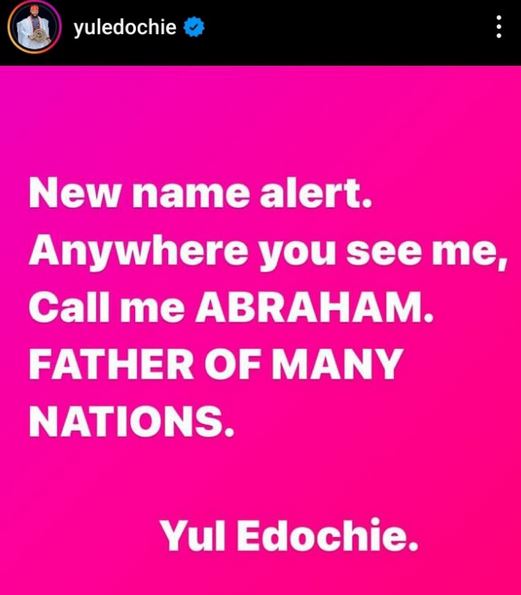 Popular Nigerian actor and producer, Yul Edochie has been dragged online after he asked his fans to refer to him as “Father Abraham“.