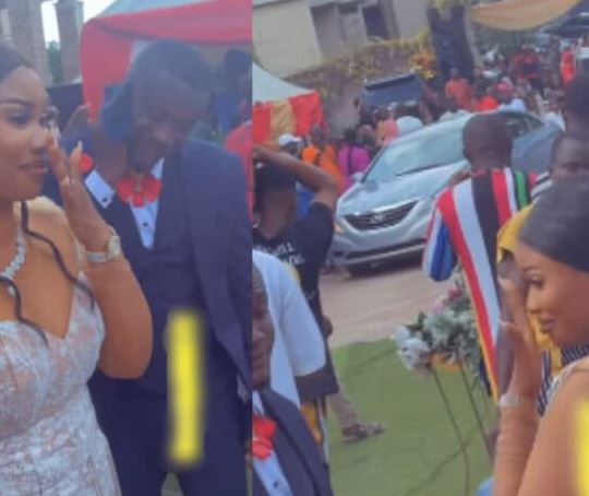The lady wasn’t informed about the car gift, as she watched with an expression of unbelief when the car was driven into the wedding location.