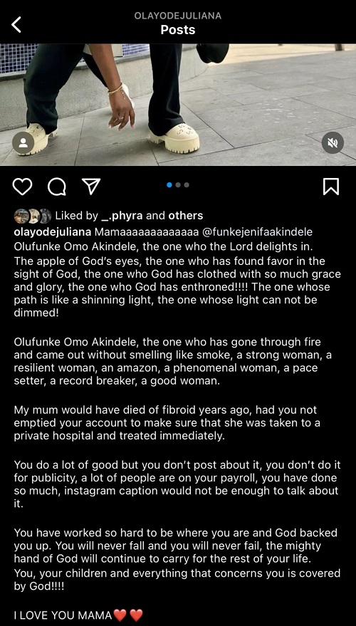 “Mamaaaaaaaaaaaaa @funkejenifaakindele Olufunke Omo Akindele, the one who the Lord delights in.