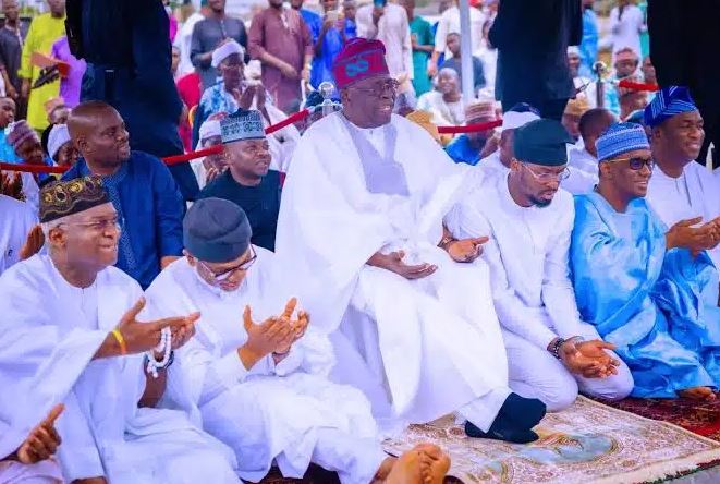 President Bola Ahmed Tinubu joined the Muslim Faithful across the country for the Eid-el-Fitr prayers on Wednesday, April 10.