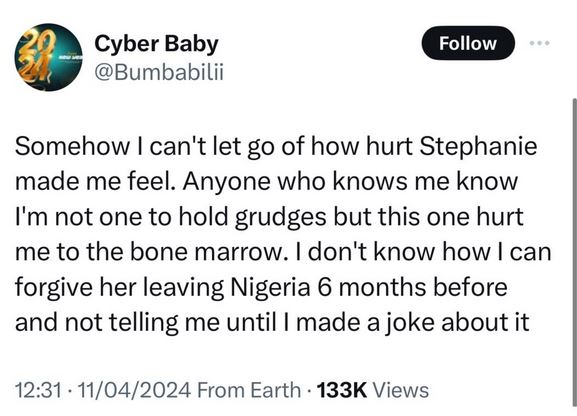 According to the X user, her grievance is that the said friend didn't tell her she had moved to the UK until 6 months after the said relocation, even though they spoke on the phone on a weekly basis.