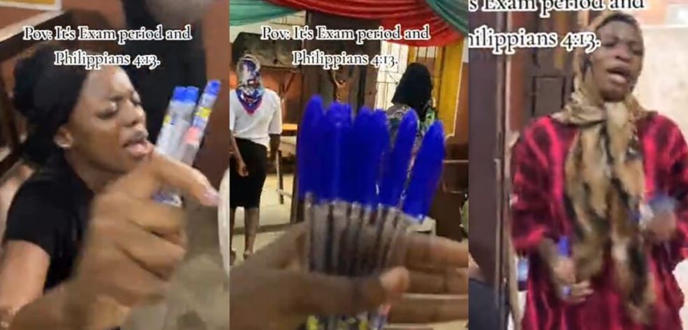 In the footage, several female students were seen holding blue biros while engaged in prayer. Some stood, while others knelt, seeking divine intervention for their exams.