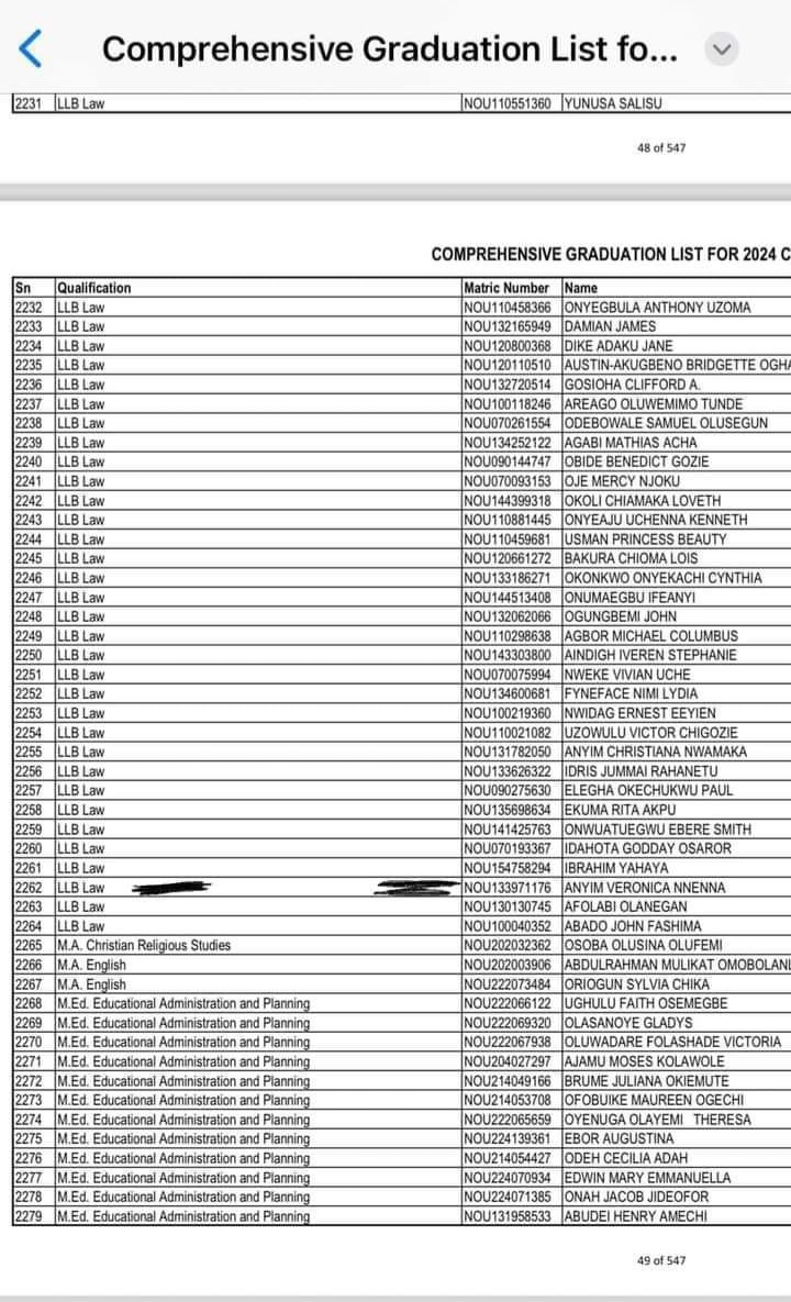 A search was one on the National Open University’s website and it revealed that, indeed, the institution has a "Bachelor of Law" program.