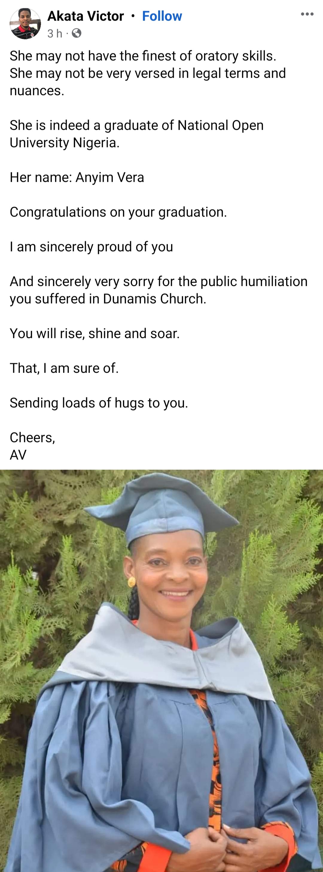 Subsequently, Nigerians found the woman's Facebook page and photos showing her graduating from National Open University, Abuja.