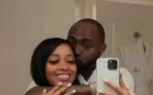 The photo captures the model, known as Bonita Maria, and Davido in what appears to be an intimate pose.