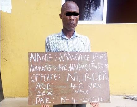 The statement read, “The Akwa Ibom State Police Command has arrested one Inyangake James Peter, 40 years old for gruesomely murdering his biological mother, one Mma-Offiong James Peter, about 70 years old on 4/4/2024 at about 9:00 am at Ikpe Annang Village in Etim Ekpo LGA.