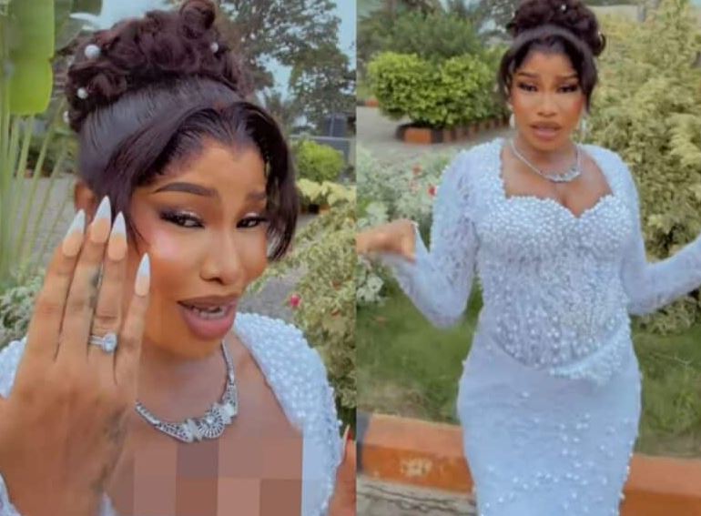 In the video that was shared, the lady showed off her wedding ring, and her diamond encrusted gown to spite her ex.