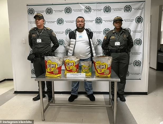Customs officers discovered the drugs hidden inside packets of powdered milk during a routine search. Ahmed was then detained by Colombian police and is facing drug trafficking charges.