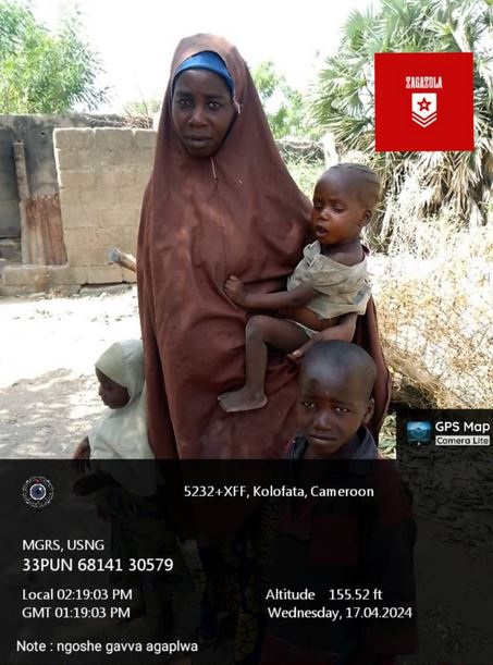 Lydia was rescued along with her three children by the troops of 82 Division Task Force Battalion in Gwoza Local Government Area of Borno State on Wednesday, April 17, 2024.