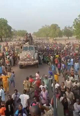 The caption read, "In a heartwarming display of gratitude and solidarity, local communities in Nigeria's Northeast region have extended a warm welcome to heroic troops of the Nigerian Army following a successful operation in the notorious Sambisa and Timbuktu Triangle areas.