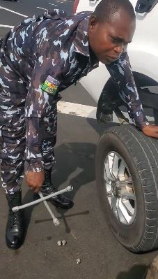 The Nigerian man said he was on his way to the mainland from the Island when he had a flat tyre. He said he saw the officer approaching him and thought he was coming to extort him but was surprised the officer came in to help him.