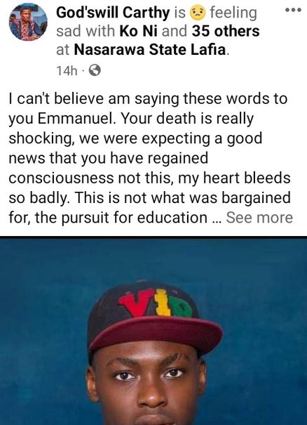 In a Facebook post on Sunday, a coursemate, God'swill Carthy, said that they had been expecting good news that he regained consciousness.